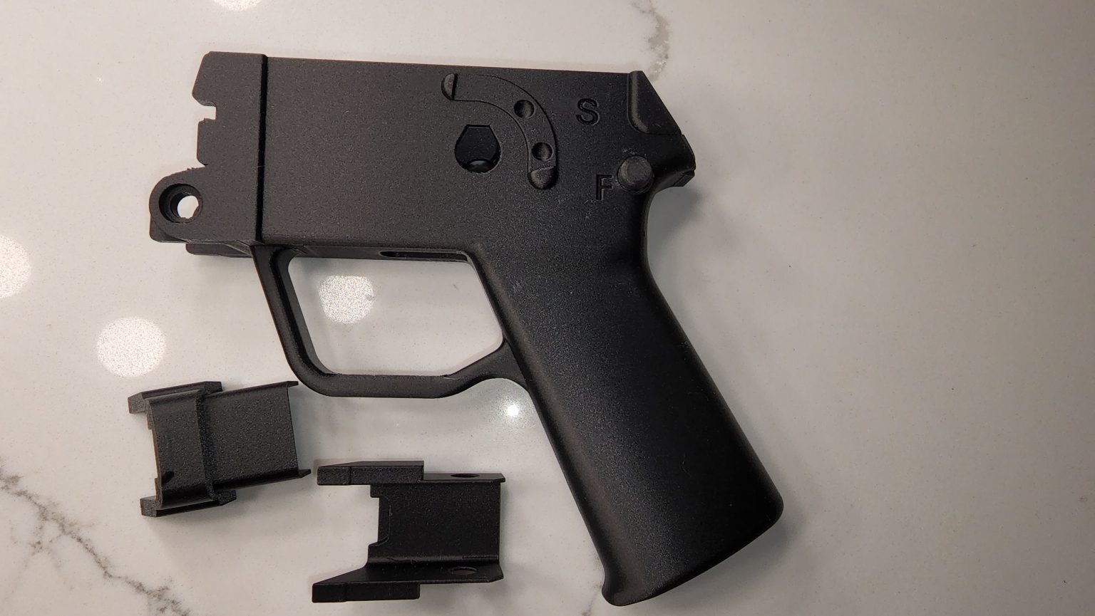 Installing the 3D-printed fixed-magazine housing is almost the same as installing the housing that came with the MP5 clone.